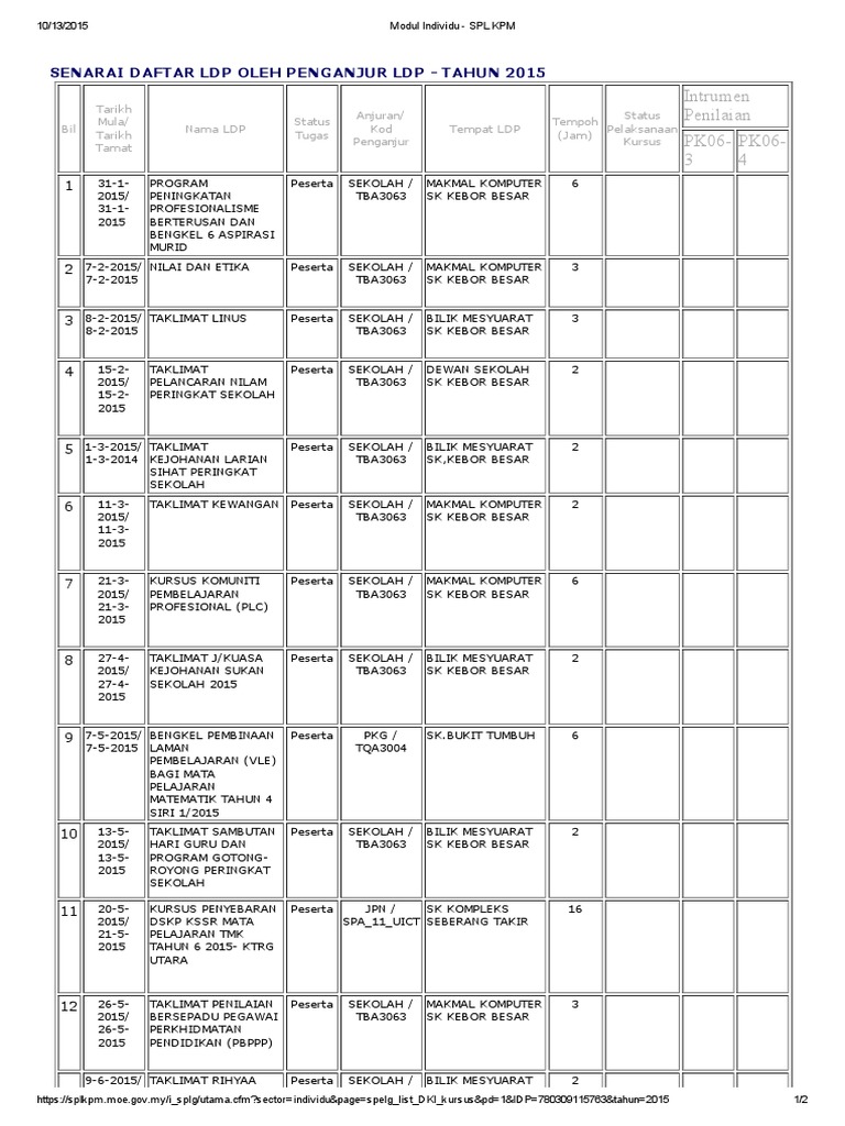 Pelaporan latihan dalam perkhidmatan (ldp) kementerian pendidikan malaysia tahun 2015. Cara memasukkan maklumat kehadiran ldp kumpulan. Kursus yang disenaraikan dalam splkpm adalah yang telah di daftarkan oleh su ldp sekolah anda. Garis panduan sistem pengurusan latihan kpm (spl kpm). Daftar plc dalam spl kpm. Cara mengikuti dan mendaftar webinar kpm melalui splkpm modul individu supaya dapat tambah jam berkursus yang akan direkodkan oleh suldp. 4/2014, kehadiran kursus hendaklah direkodkan ke dalam sistem pengurusan latihan (spl) kpm. Klik senarai kursus daftar masuk. Selaras dengan pekeliling perkhidmatan bilangan 6 tahun 2005: Barulah su spl kpm boleh sokong kursus tersebut. Anda boleh melihat adakah jumlah kursus yang anda sertai. Also tryspl kpmspl kpm (splg) spl kpm moe gov myspl kpm modul individumodul individu spl kpmspl kpm onlinespl. 4 2014 dimana kehadiran kursus hendaklah direkodkan di dalam sistem pengurusan latihan (spl).